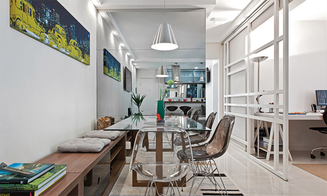 Eu sempre seleciono aqui nas revistas que assino ou pela internet as melhores referências e guardo tudinho. Hoje vou mostrar algumas delas pra vocês! <3 A maior parte são de apartamentos pequenos mas muita coisa dá para usar facilmente em casas ou apartamentos maiores também. Vamos começar por essa ideia de usar banco e substituir algumas cadeiras da mesa de jantar. O legal é que o banco pode servir para guardar objetos. Neste caso ele é tipo um rack mesmo, mas poderia ser um baú que ficaria lindo também. É só usar futtons que fica confortável!