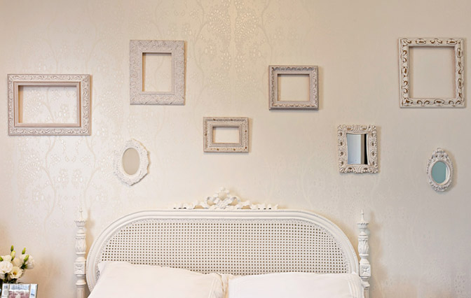Adorei essa ideia de usar somente as molduras e apenas um papel de parede texturizado de fundo. Ficou uma graça, não acharam?