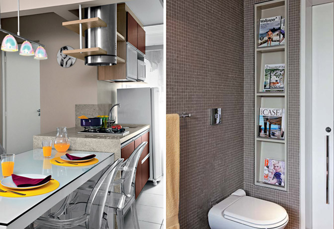 Nichos embutidos no banheiro facilitam a vida dos moradores. Na área do box então, muito mais!