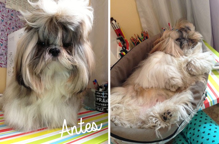 Também tenho um shih tzu, o nome dele é Lucky. O Alvin ficou uma gracinha tosado :)