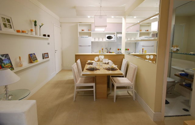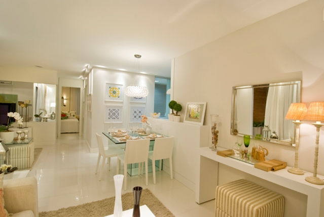 1º modelo decorado Este tem a parede da sala de jantar bem parecida com o tamanho da minha, a diferença está na parede da tv, a minha era assim, mas como mandei tirar o 3º quarto, agora a tv ficará mais ao fundo (entrando no corredor da esquerda da foto).