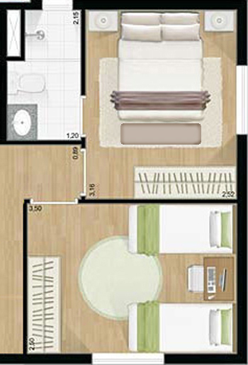 Comecei a pensar com os meus botões, e TCHARÃMMMM! Eu posso colocar uma porta de correr, se ela correr para o outro quarto! É só mudar a porta do outro quarto fazendo um mini corredorzinho, e o mesmo servirá para acomodar o guarda-roupas do outro quarto!