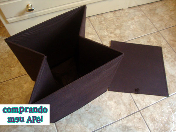 O mais legal é que é feito de papelão revestido com tecido e o assento tem almofadinha pra ficar confortável!
